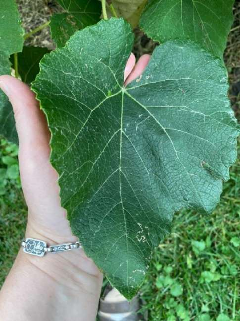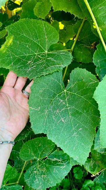 Пойдем дальше? Тогда теперь о – винограде. Две виноградные лозы посажены рядом, и их листья год назад до скелета обгладывали гадкие жуки, которых я смогла победить (с помощью Флоры!). В этом году оба растения прекрасно себя чувствуют и у них тоже довольно большие листья.
