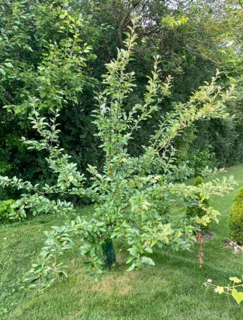 А вот эта яблоня до активации Флоры 3 года сидела в глинистой почве и никак не росла. Это редкий эксклюзивный сорт. Деревце было привезено из питомника, (как и остальные), а ее семена датируются 1845 годом. Врут, скорее всего! Я уж думала, что не выживет яблонька, но надежды все же не теряла, продолжала корректировать программу СветЛ Флоры, и как оказалось – не зря! Ствол деревца был весь покрыт плесенью, а листочки – ржавчиной, и до Флоры я ее спасала обрызгивая перекисью водорода. И вот через три года после активации Флоры, яблонька выздоровела, окрепла, и начала бурно расти, и просто невероятными  темпами!