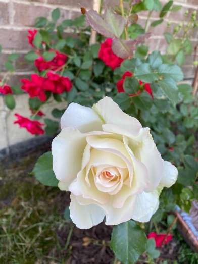 Розы в этом году цвели безпрестанно все лето, и хотя на момент составления этой статьи уже наступило  7 октября, и сегодня поливает заунывный холодный дождик, но розы продолжают радовать своим ароматом. Сообщу только один факт: все эти розы были посажены в мае этого года! Да-да, они совсем молоденькие, и я даже клумбу еще для них не доделала, а просто мы насыпали землю да так и оставили пока. Розы эти соседствуют с Черешней – той самой, вымахавшей ввысь за два сезона с момента посадки.