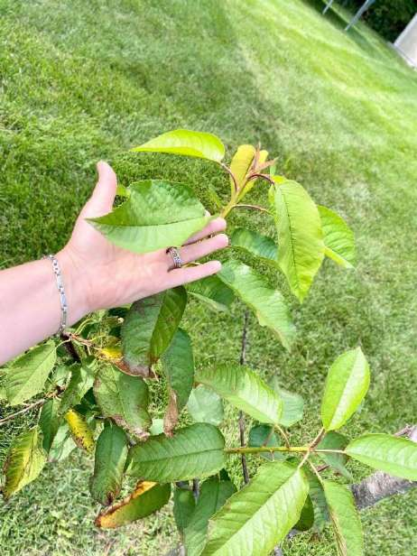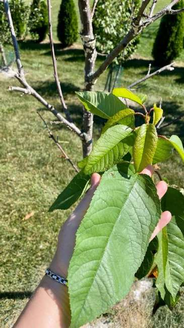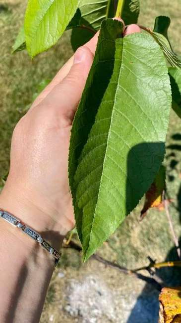 Листья у этой черешни (слева) крупные, но не такие огромные, как у чуть не погибшей вишни, которые вы  увидите на следующих страничках!