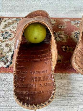 Осенью целыми днями она в трудах – то яблоки с наших яблонь себе на зиму в запас таскает, то каштаны в клумбы закапывает. 3-го сентября вышла я на террасу- никак не могу шлёпку надеть – глянула, а в ней – каштан. Белка  спрятала. Хотела чай на террасе попить, смотрю, а в цветочном горшке ещё один каштан спрятан!