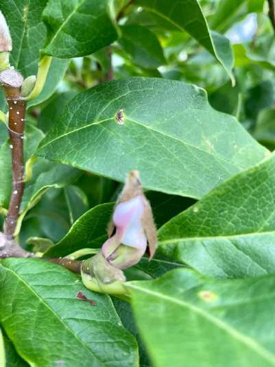 И вот вчера, 6-го октябра, готовя эту статью, я решила проверить, а не появились ли бутоны 5го цветения, и нашла 3 бутона! 5-ое цветение! Прошу любить и жаловать: моя красавица магнолия по прозвищу Пионэрка, 5-е цветение, 6-е октября 2021 года!