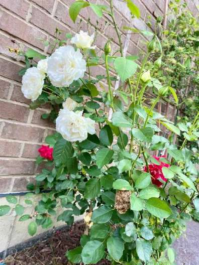 Помимо роз ползущие лианы тоже цвели все лето, но они были посажены три года назад.